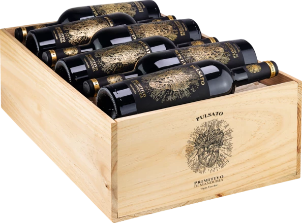 Doften som stiger ur ett glas Pulsato är mycket intensiv: Mättade aromer av amarenakörsbär och mörka plommon samsas med inslag av vanilj, kanel och nejlika. Vinet är framställt av druvor från gamla vinstockar, och i gommen utvecklas en vibrerande kraftfullhet med påtagligt djup. Trots sin fyllighet är vinet smidigt med sammetslena tanniner och stor finess – ett unikt vin från Apuliens bultande hjärta.